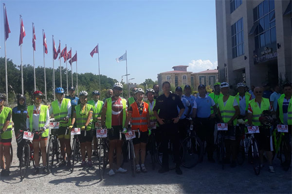 Düşman işgalinden kurtuluşunun 100 yıl kutlamaları için Aydın’dan yola çıkıp 300 kilometre pedal çevirerek Dumlupınar şehitliğine ulaşmak isteyen Türkiye Bisikletçiler Derneği Aydın Şubesi 21 sporcu Uşak İl Emniyet Müdürlüğüne ziyarette bulundu.