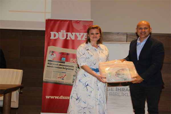 Dünya Gazetesi Yazı İşleri Müdürü Handan Sema Ceylan’ın moderatörlüğünde gerçekleşen panelde Dünya Gazetesi Sürdürülebilirlik Sayfa Editörü Didem ERYAR ÜNLÜ, Dünya Gazetesi Genel Koordinatörü Vahap MUNYAR ve Yayın Kurulu Başkanı Şeref OĞUZ dünya ve Türkiye ekonomisindeki gelişmeleri, döngüsel üretim ve yeşil ekonominin getirdiği ticaret fırsatları, uluslararası ticaret, toplumsal, ekonomik ve çevresel ayakları olan sürdürülebilirlik amaçlarını ele aldı