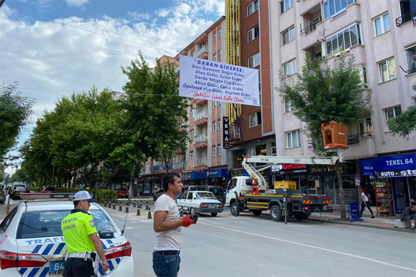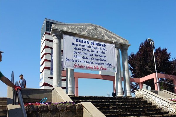 Günün anlam ve önemine istinaden asılan pankartlarda Can Yücel'in 'Baban Giderse' şiirinin dizelerine yer verildi.Asılan pankartlarda; "Baban giderse, başı dumanlı dağın gider, atan gider, sırtın gider, darda yetişen elin gider, aklın gider, canın gider, öpülecek elin gider, bayram gider. Babalar günü kutlu olsun" ifadelerine yer verildi.